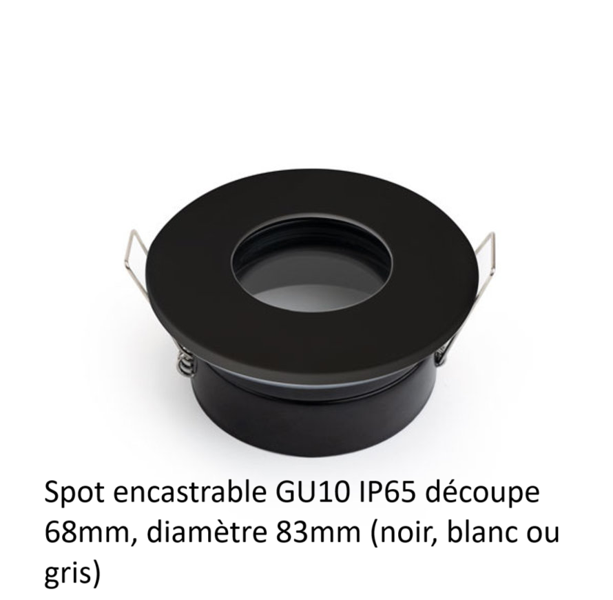 Spot encastrable GU10 IP65 découpe 68mmen combinaison avec Spot LED dimmable 6W 600 lumens